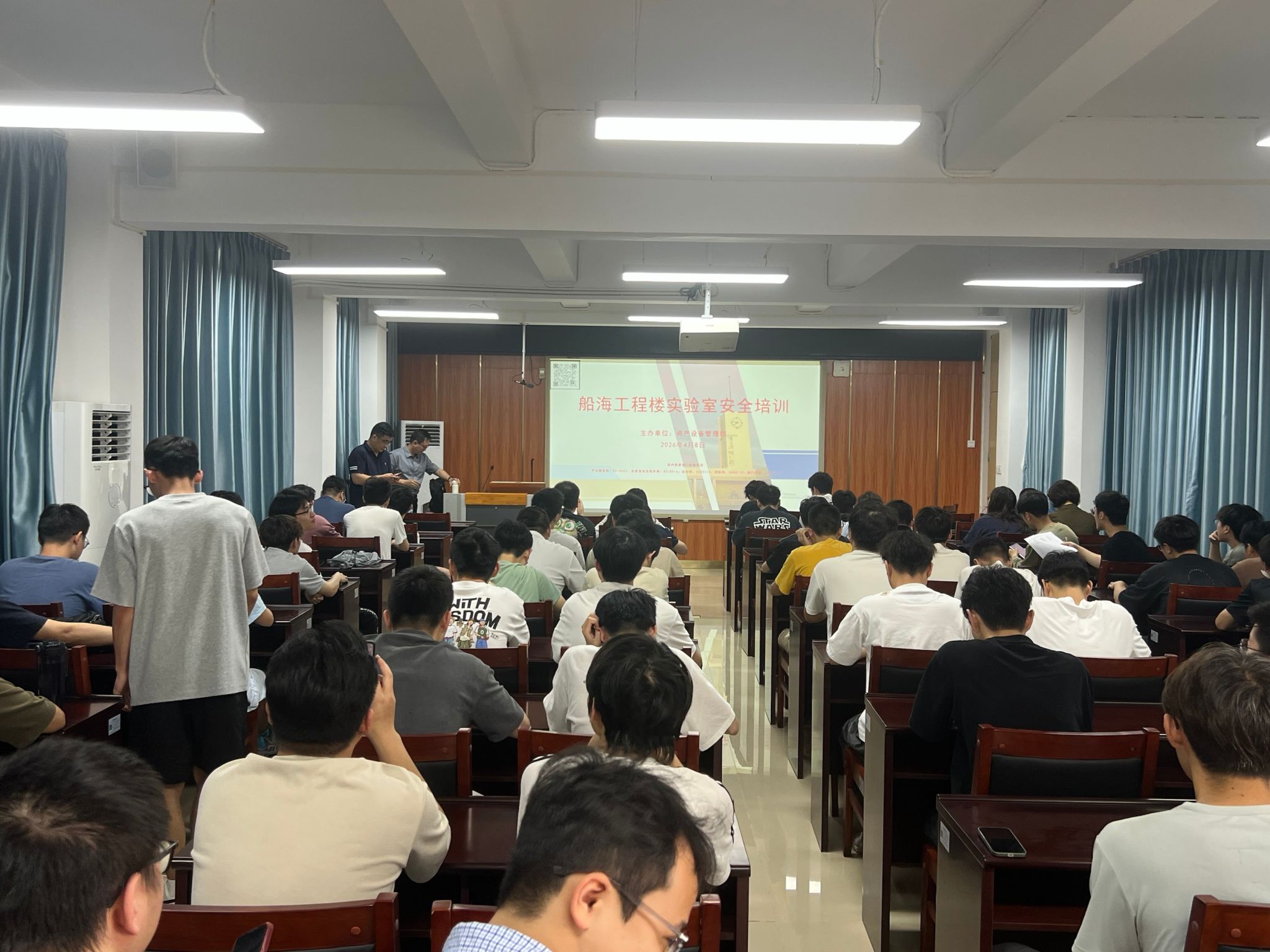4月8日下午,资产设备管理部就船海工程楼智慧海洋实验室安全建设和管理工作在霞山校区北院教学B楼503室开展一次安全培训,智慧海洋实验室87名师生参加了培训。培训由化学与环境学院副教授、实验室安全督导组组长李宇彬主讲,实验室安全技术科科长纪德安主持。